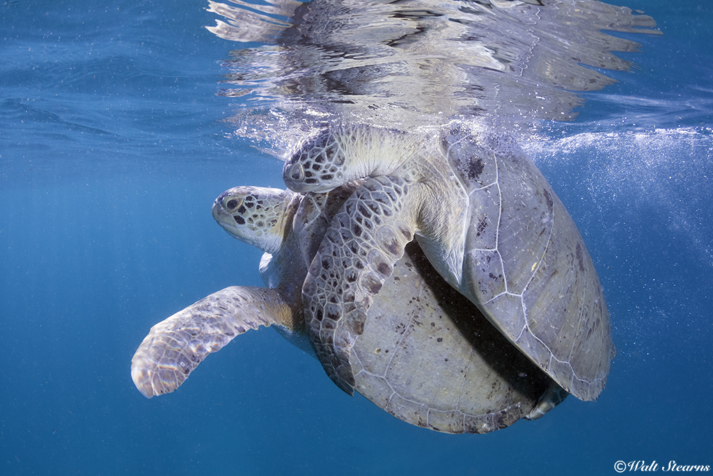 During the early part of June through August is good time period witness green sea turtles mating with often take place at or near the surface.