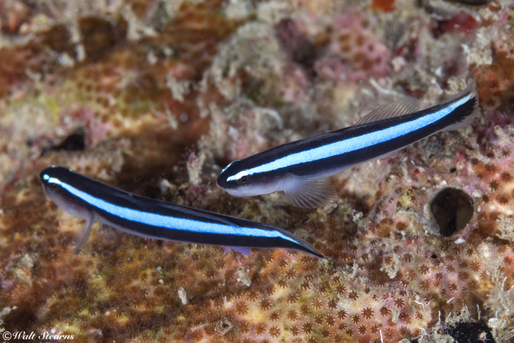Some might confuse a Florida Neon Goby with either the Caribbean Neon Goby (E. lobeli), or the Barsnout Goby (E. illecabrosus). One way to tell the difference is that the signature blue stripe running the length of its body is broader than the other two species. And keep in mind that neither of the others are found in Florida. The Florida Neon Goby has been reported in both the northern Yucatan and Texas Flower Gardens, it’s predominately a fish found in the waters of the Sunshine State.